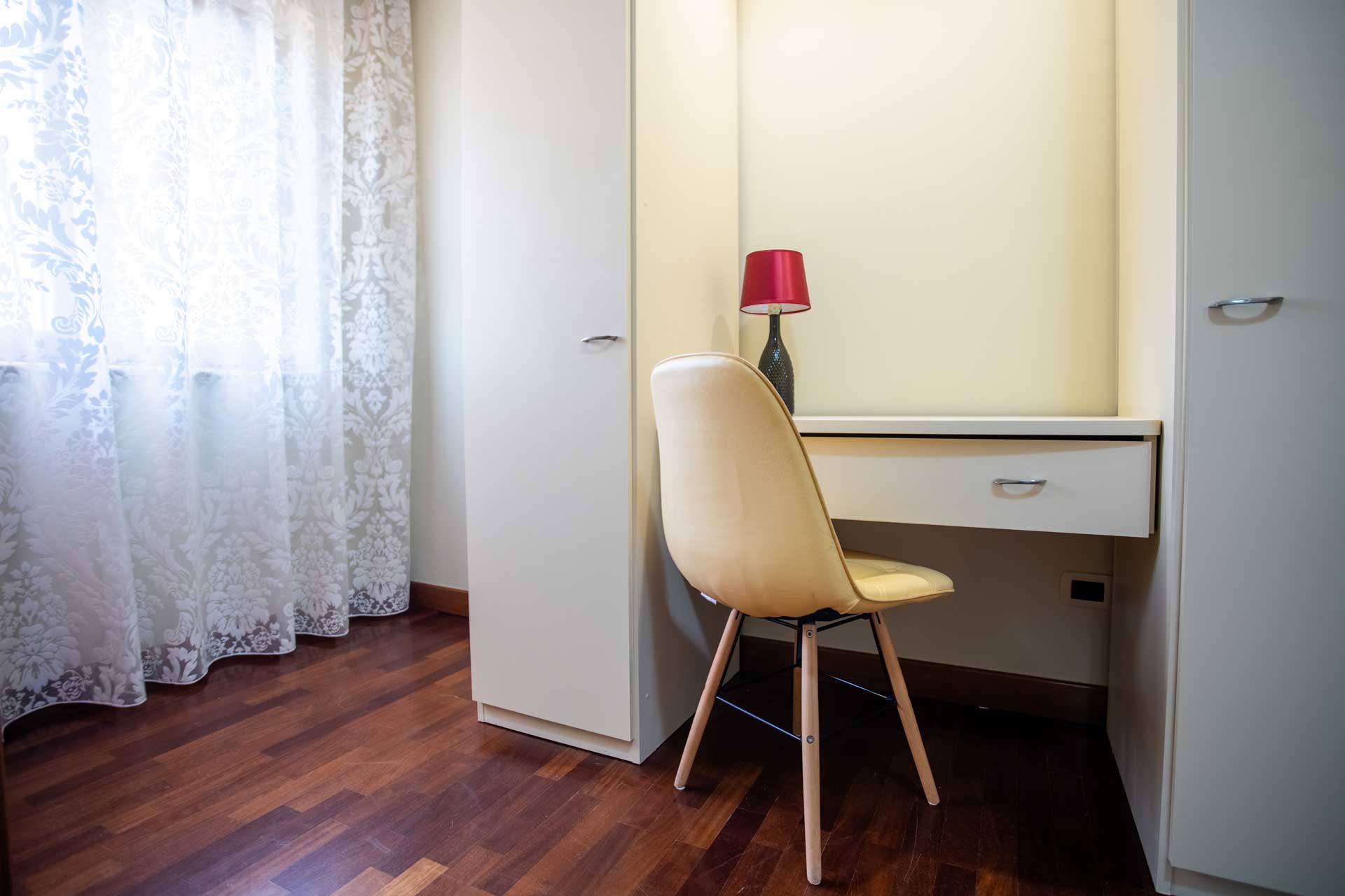 L’entrata nella camera è un viaggio nell’eleganza e nello stile, con arredi curati nei minimi dettagli. Le pareti sono dipinte con tonalità raffinate che creano un’atmosfera di tranquillità e relax. Il pavimento in parquet aggiunge un tocco di calore, mentre gli arredi sono selezionati con attenzione per garantire un mix armonioso di tradizione e modernità.